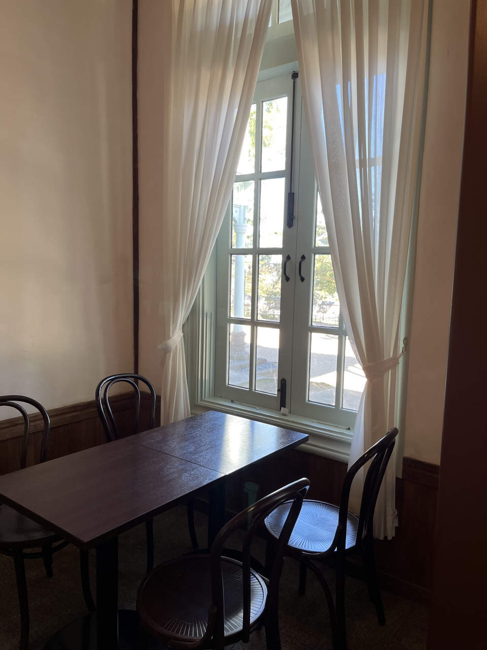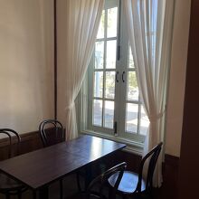 興雲閣の建物内部にある喫茶室。ここまで松江城見学で疲れた足を休まれるには絶好の場所だ。レトロな喫茶室で、飲みものの他にケーキ類も用意されている。3時前に入店したが、すでに売り切れているケーキがあった。人気があるのだろう。