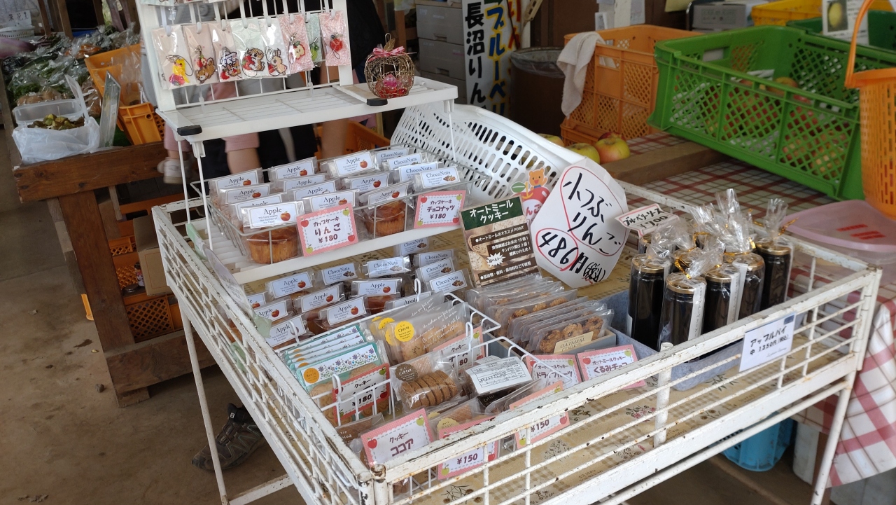リンゴ狩りをしなくても直売所で綺麗なリンゴ、安価なはねだしリンゴ、野菜果物、お茶やお菓子、雑貨も購入出来ましたが、リンゴ狩りを体験しました。サンふじ、陽光、名月と三種類試食した中から群馬で作られた名月を狩り、購入しました。甘味が強く美味しいりんごでした。