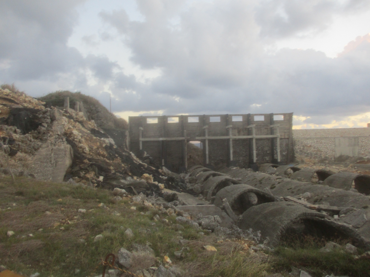 北大東島はかつて燐鉱石の採掘が盛んに行われていました。現在に至るまでに土地開放と共に産業は糖業へと転換されましたが、1950年の閉山に至るまで、80万トンの燐鉱石を採掘しました。燐鉱石貯蔵庫跡はかつての採掘場所の名残りでした。