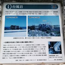 島の南海岸沿い、江崎港の近くにあります。“一周道路”脇にある巨岩。案内板がなければ通り過ぎてしまうただの岩ですが、2009年の台風21号によってどこからか飛ばされてきた石です。こんなデカい石がそんなことある?ただそれだけの岩ですが見どころの乏しい北大東島では観光スポットになってしまいました。