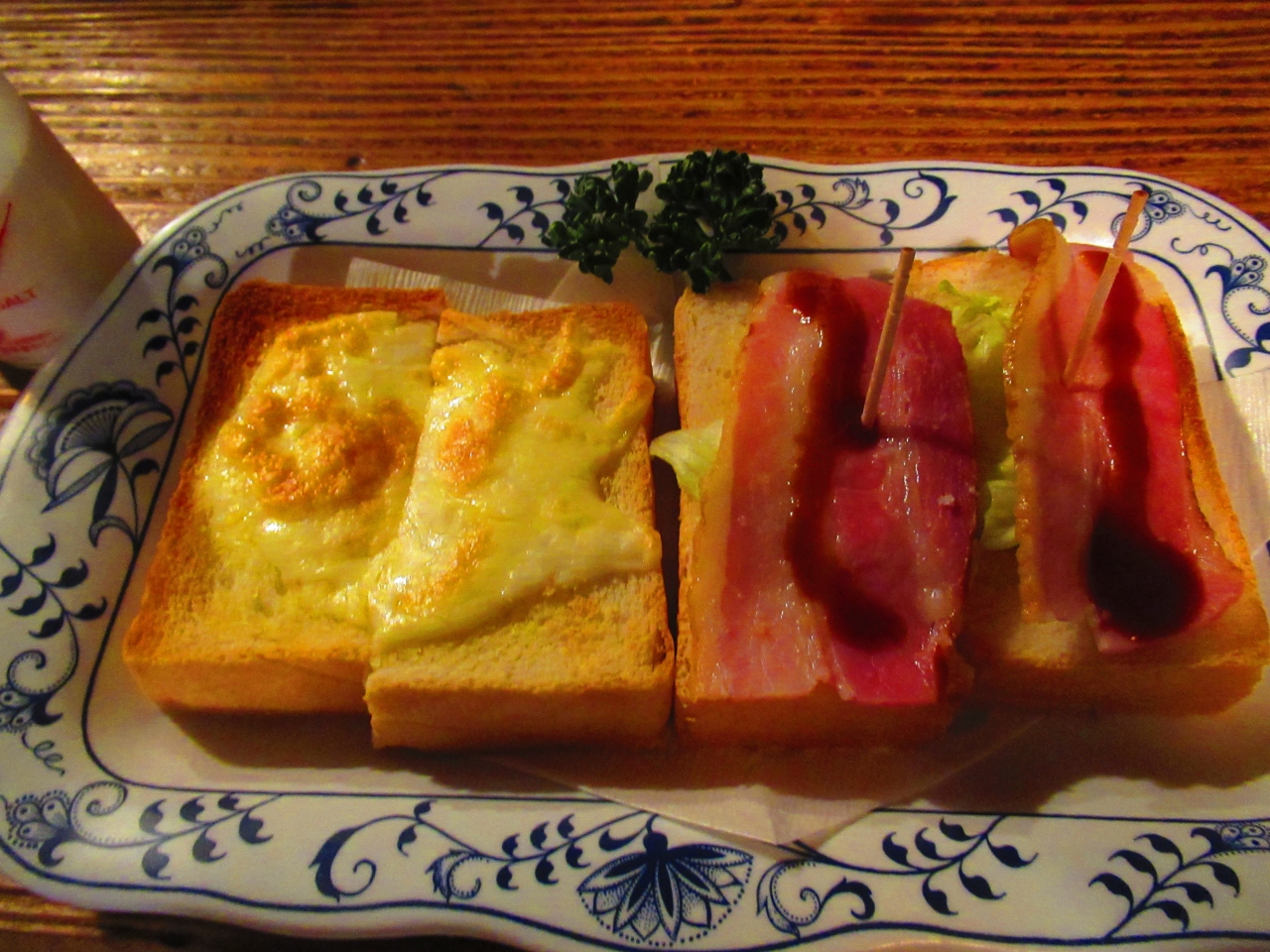 「ナポリタン」を食べに行ったのですが、同行者の勘違いで、それは「さぼうる2」でした。「さぼうる」は喫茶メニューだったので、ミックストーストとクリームソーダを注文しました。