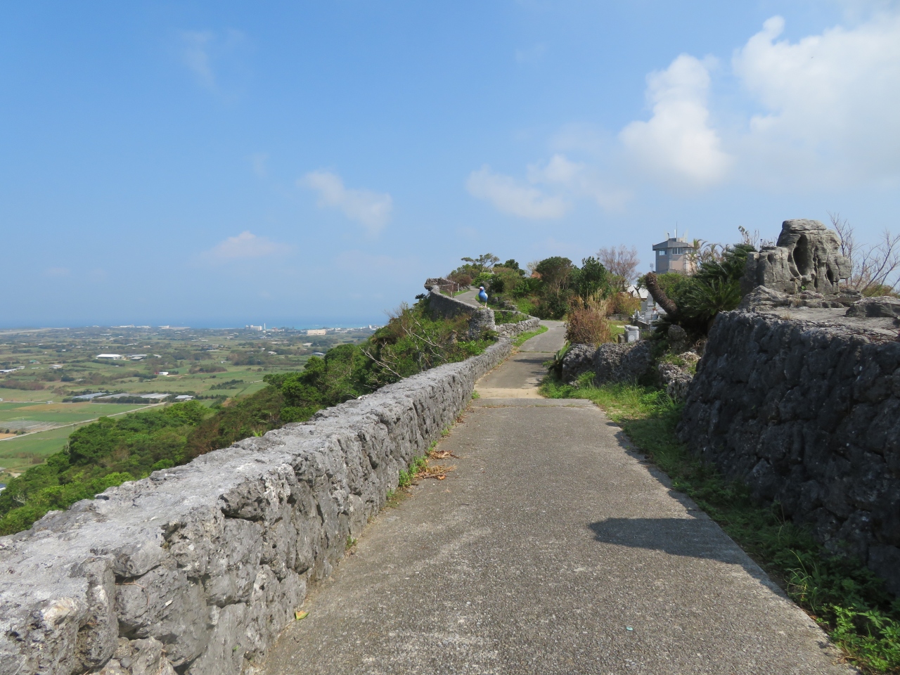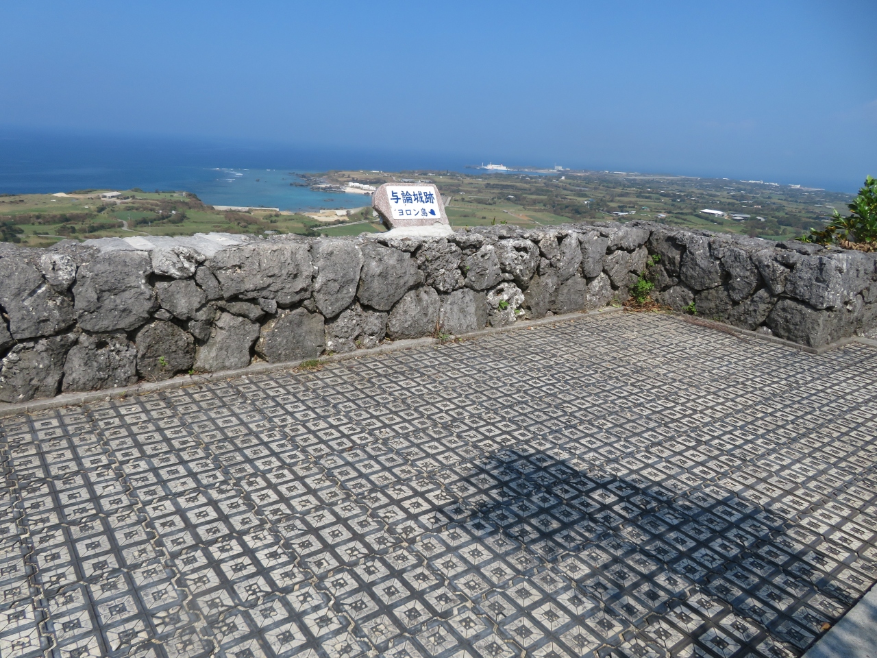 島の南側の高いところにあるのが与論城跡なのですが、築城中に王国が滅亡してしまってお城は未完成だったとのこと。現在は石垣だけが残っていて神社がありました。高いところで景色が良く、ちょうど那覇からのフェリーが入港してくるところを見ることができました。