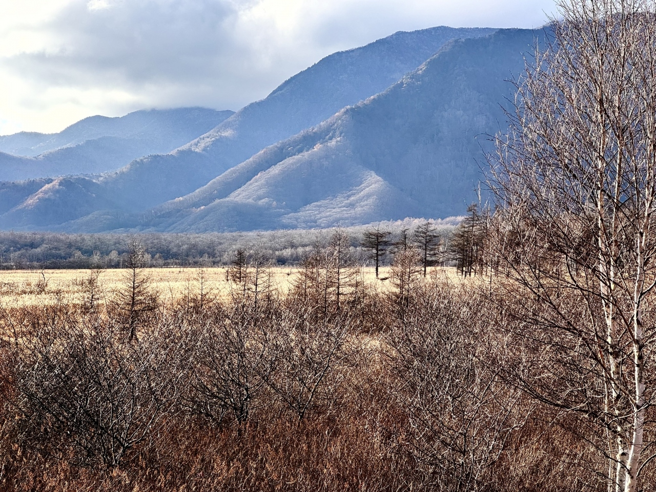 白樺の樹々の間に枯野が広がる戦場ヶ原は、人気が無く静かな空間が広がっていました