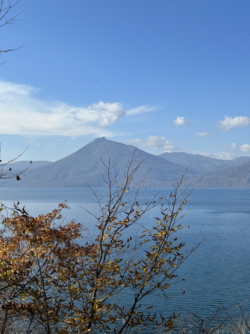 休暇村支笏湖の展望台からの紅葉が綺麗でした。盛りは終わっていましたがそれでも黄色や赤の落ち葉がたくさんで展望台からは支笏湖を見ることが出来、空気が澄んでいました。さすが日本有数の水質を誇るだけあって水は綺麗に澄んでいて透明でした。約4万年前の支笏火山噴火によって誕生したカルデラ湖で水の綺麗さは支笏湖ブルーと呼ばれています。