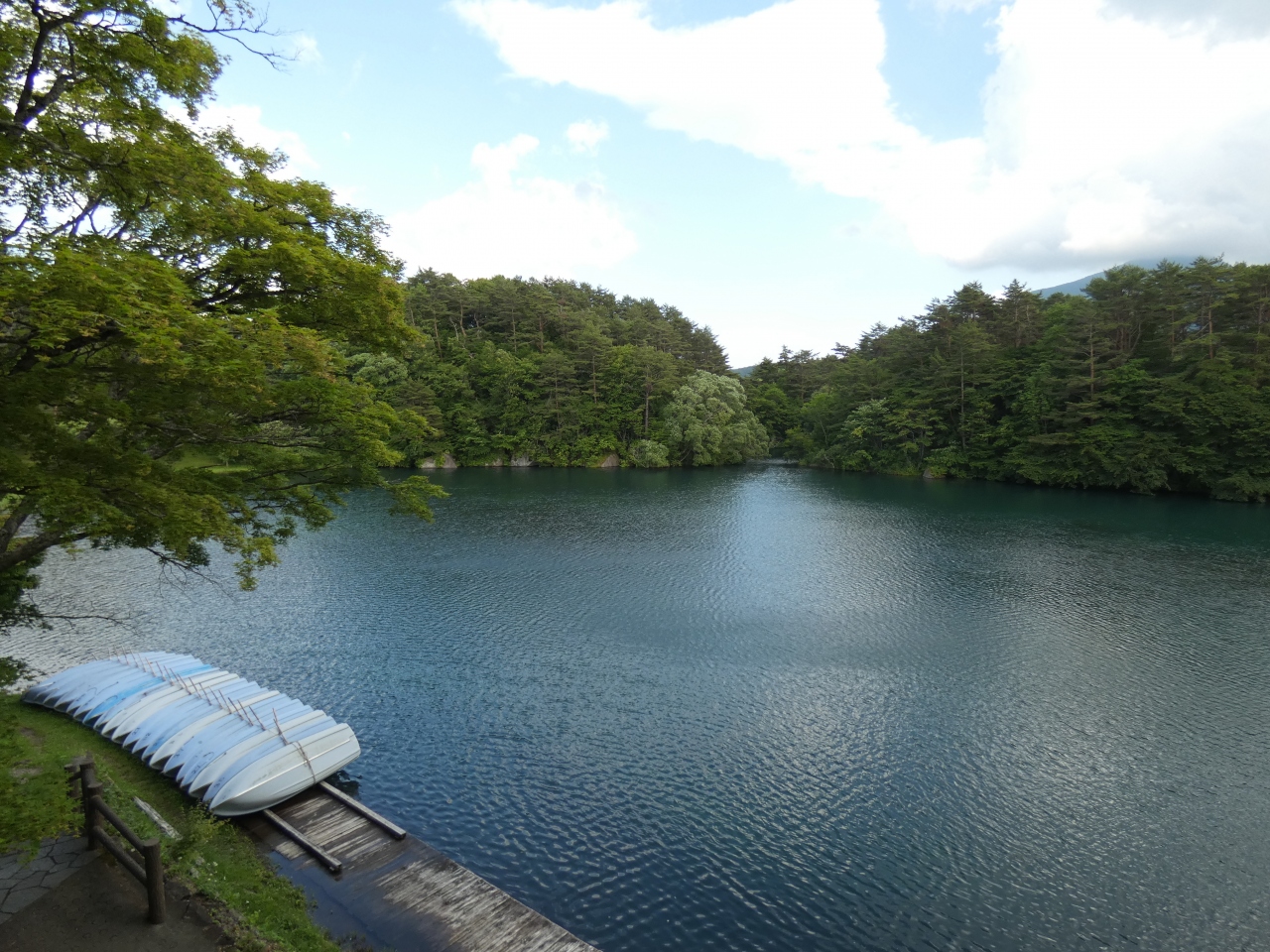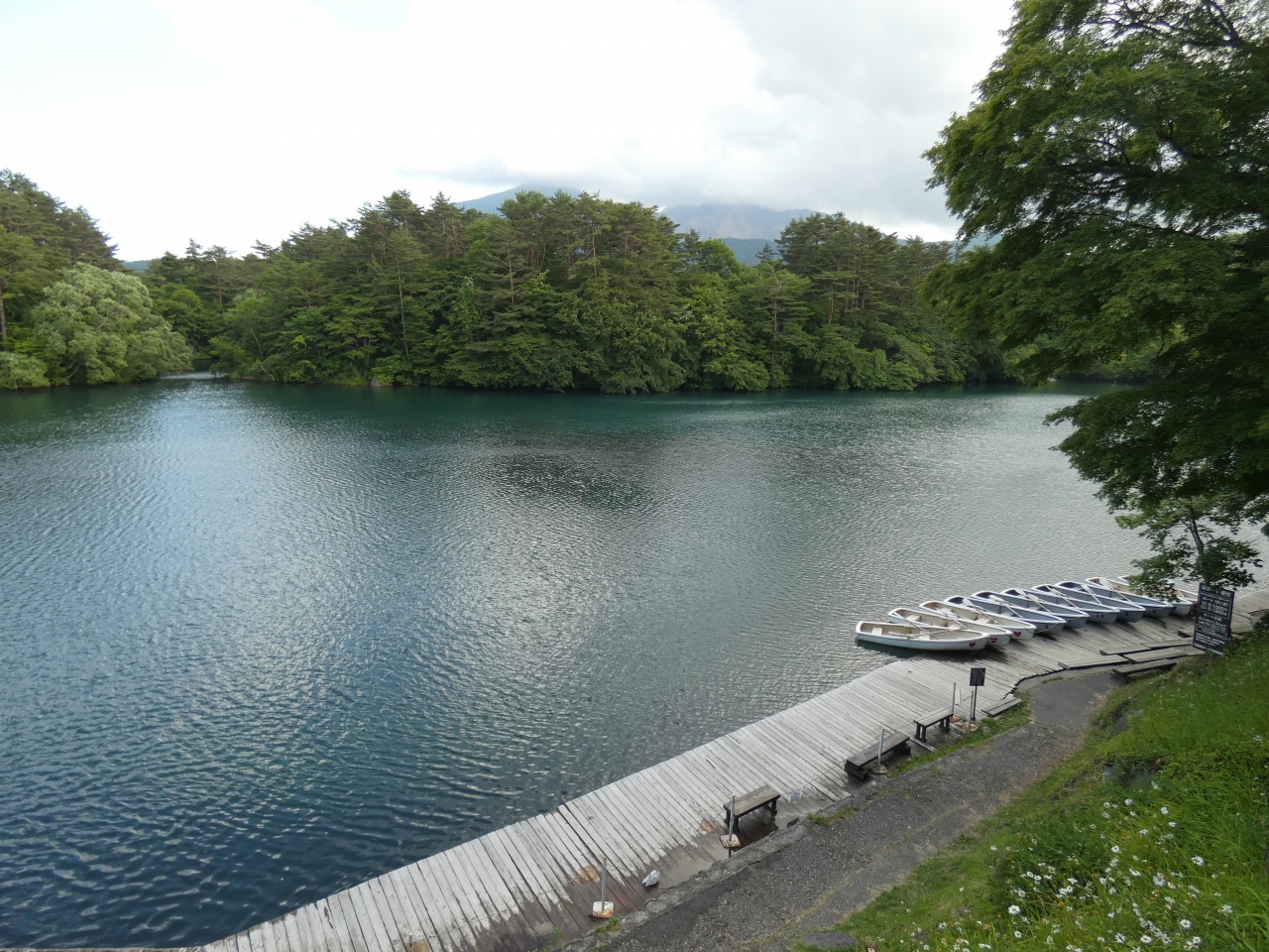 裏磐梯の人気観光スポットの五色沼の中で最大の沼です。裏磐梯山の火口壁を背景とした美しい沼で、ボートを楽しむ事も出来ます。標高780mに位置し周囲4㎞、深さ13m、水は無色透明ですが、湖底から酸性の鉱泉が湧き出て晴れた日はコバルトブルーの美しい色が見られます。