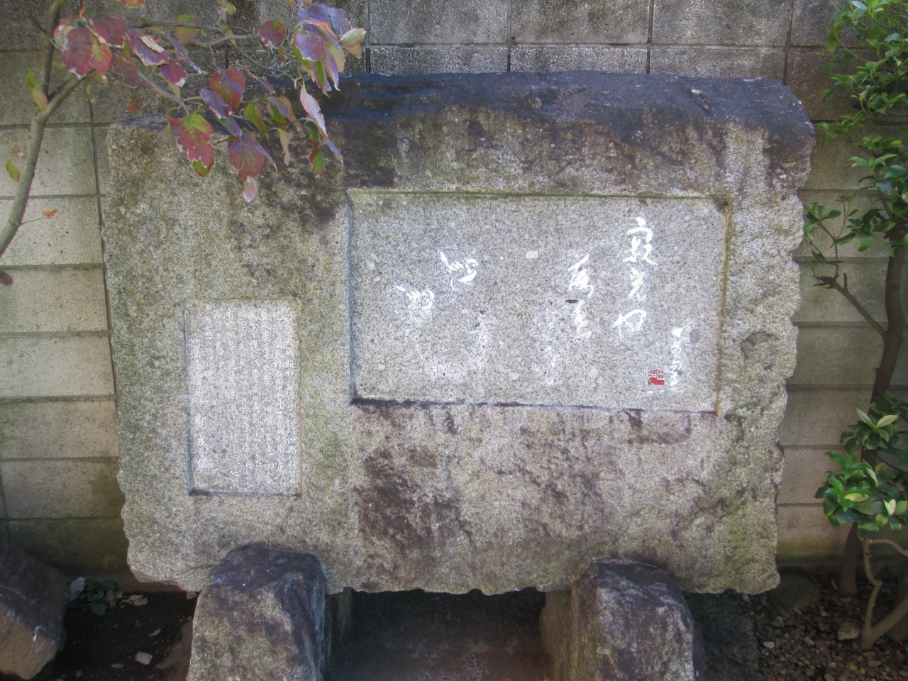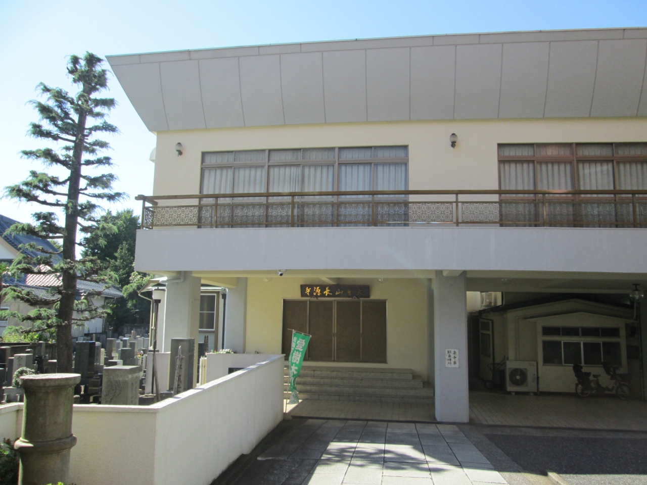 浄土真宗単立系の寺、創建は1612年、開山は釈西玄和尚、本尊は阿弥陀如来像です。山門を通ると、参道に本郷出身の俳句・俳画家小田島十黄の句画碑、奥に本堂があります。俳諧に精通している方ならご存じかもしれませんが、小田島十黄という俳諧師を初めて知りました。本堂左の墓地と本堂上の寺名が無いと、お寺とは思えないコンクリート造りの建物です