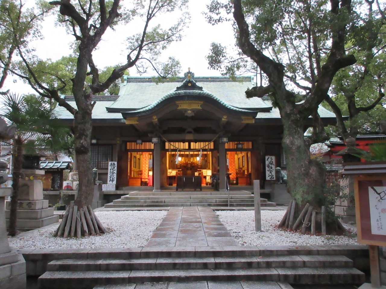 谷町九丁目の寺町を散策した際に、商人の街である大阪を代表する神社である【高津宮】も訪問しました。南側には立派な石の鳥居があり、そこから足を運んでいくと途中で下り、その先に登りとなっていました。最後の石段を上って境内に入ると青銅屋根の中心には唐破風が配置されていて、華美にはならない程度に躍動感のあるその造りは、とても見ごたえがありました。