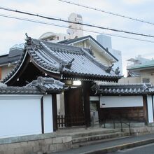 地下鉄の谷町九丁目駅から、谷町六丁目方面に向かって寺町を散策した際に、こちらの日蓮宗のお寺にも立ちよりました。白い塀に囲まれたお寺ですが、山門の両側の塀のみが下見板張り塀となっており、他のお寺との違いを出していました。山門から境内を除くと近代的なデザインの本堂が見えていて、コントラストがユニークに感じられました。