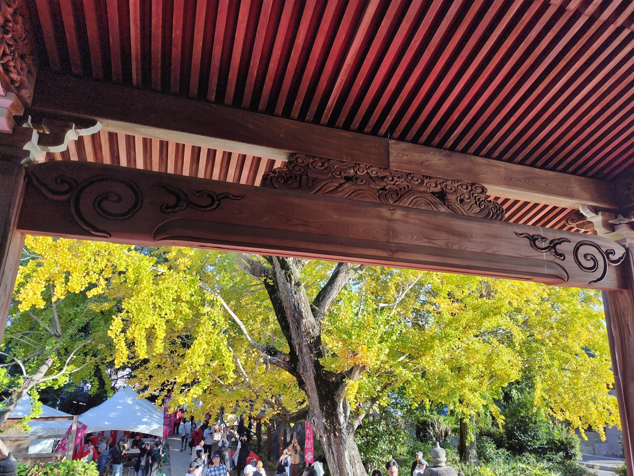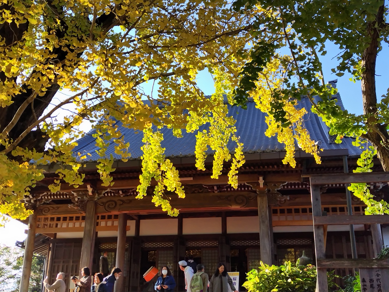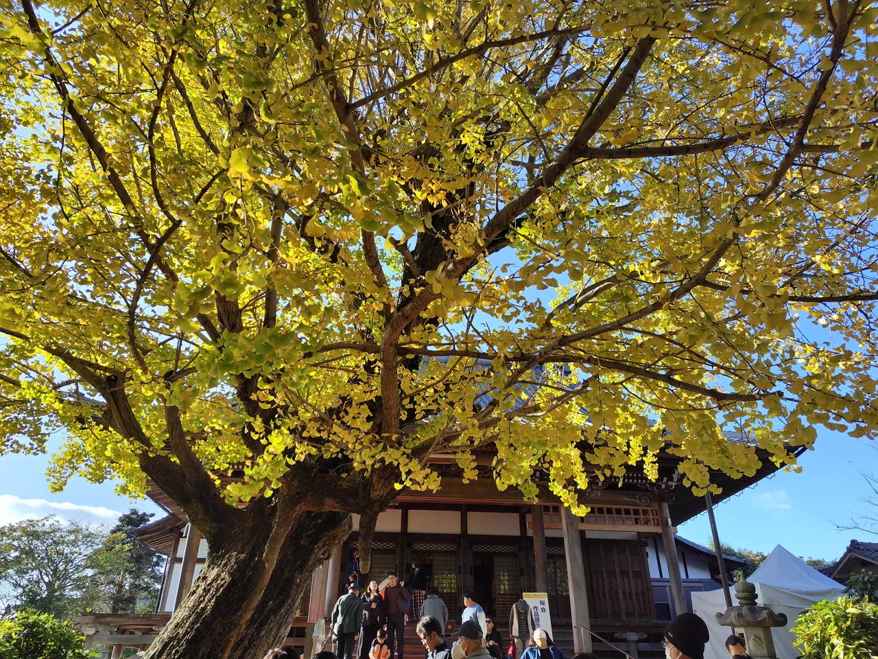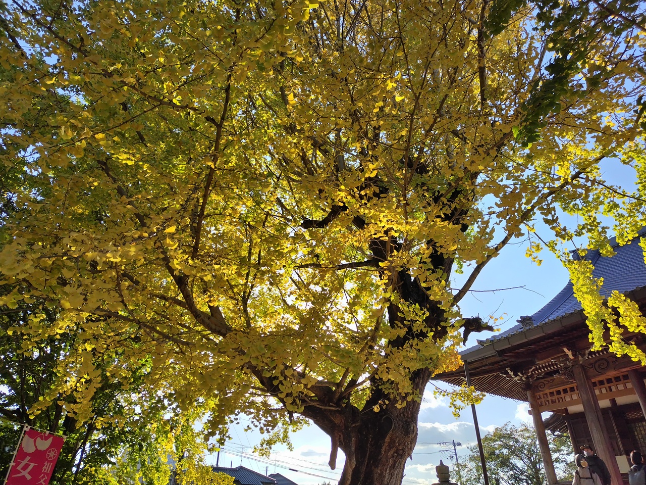 黄葉しているイチョウがないか探しながら散策して祐専寺に行くと境内のイチョウは輝く黄色で感激しました。