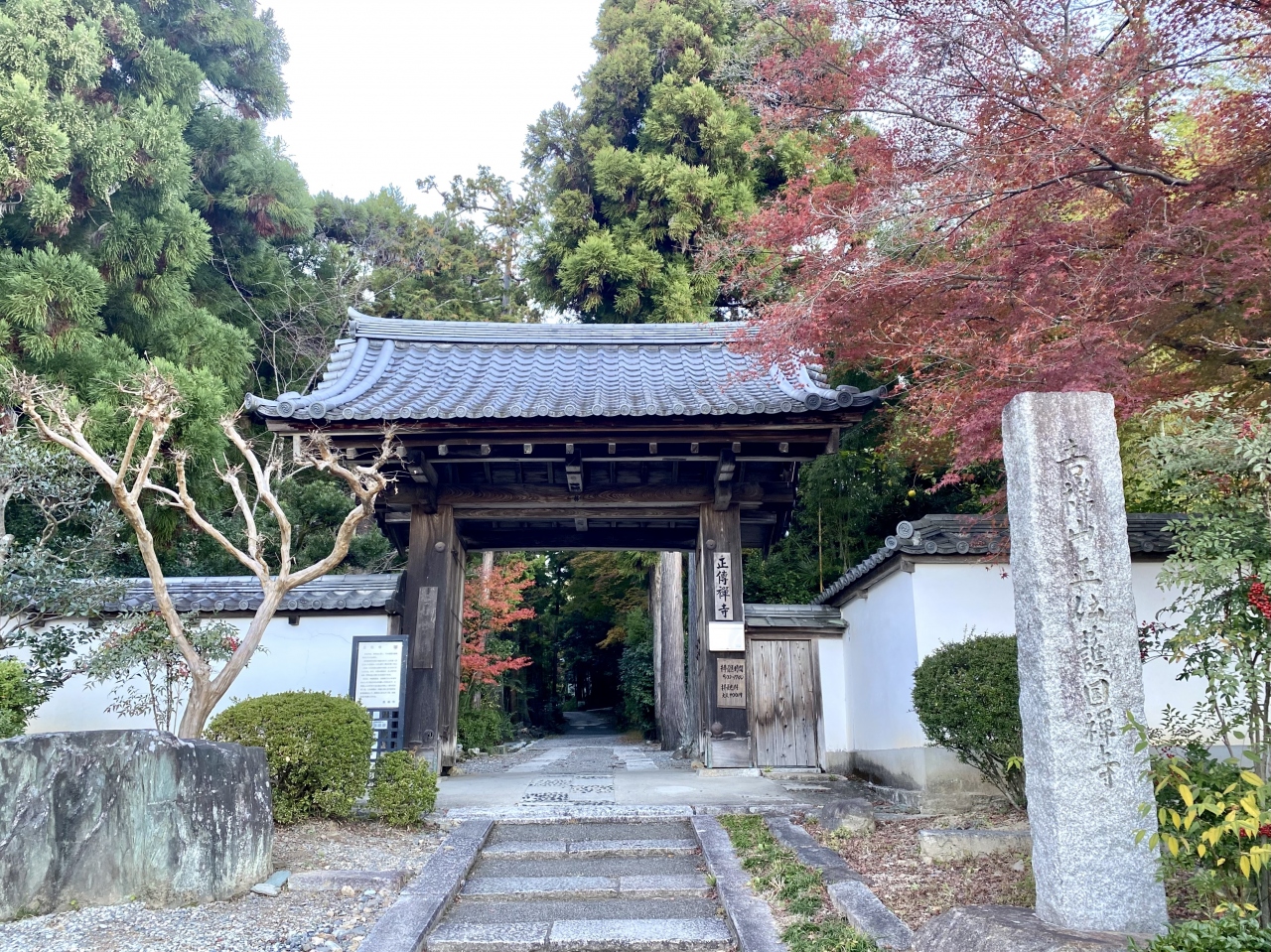 バスでは京都駅前から市営9番西賀茂車庫前行に42分乗り神光院前バス停で下車、500m8分ほど登っていくと山門に着きます。帰りも同じく神光院前バス停から京都駅前行に乗れば乗り換えなしで戻れます。
