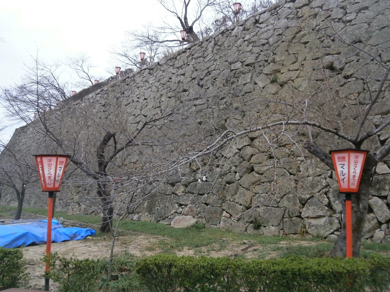 森忠政によって江戸時代初期に築かれた城で、日本三大平山城のひとつとされており日本100名城にも指定されています。しかし天守閣等の建造物は残されておらず、石垣のみが残されています。また、鶴山公園として整備されており、サクラの名所として知られています。