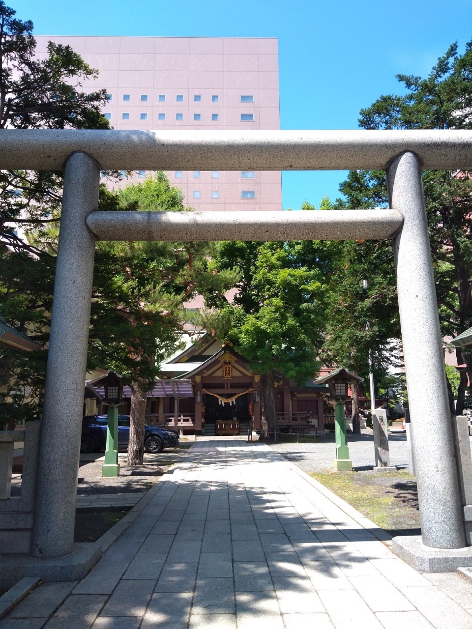 目の前を路面電車が走るシーンが展開する。そんな鳥居をくぐって行く先にある札幌の神社。某ローカル深夜番組で出演していた天然パーマの青瓢箪が語っていたこともある神社でもある。