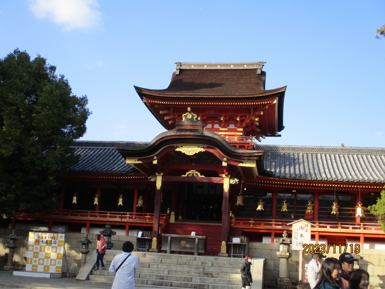 日本三大八幡宮の一つです。山の上に建っていて、麓からケーブルカーまたは徒歩で行けます。参道に石灯篭がたくさん並んでいました。社殿は鮮やかな朱色で豪華でした。訪れた日は七五三で訪れている人も多く、華やかで賑わっていました。周辺に展望台はじめ見どころがいくつもあります。