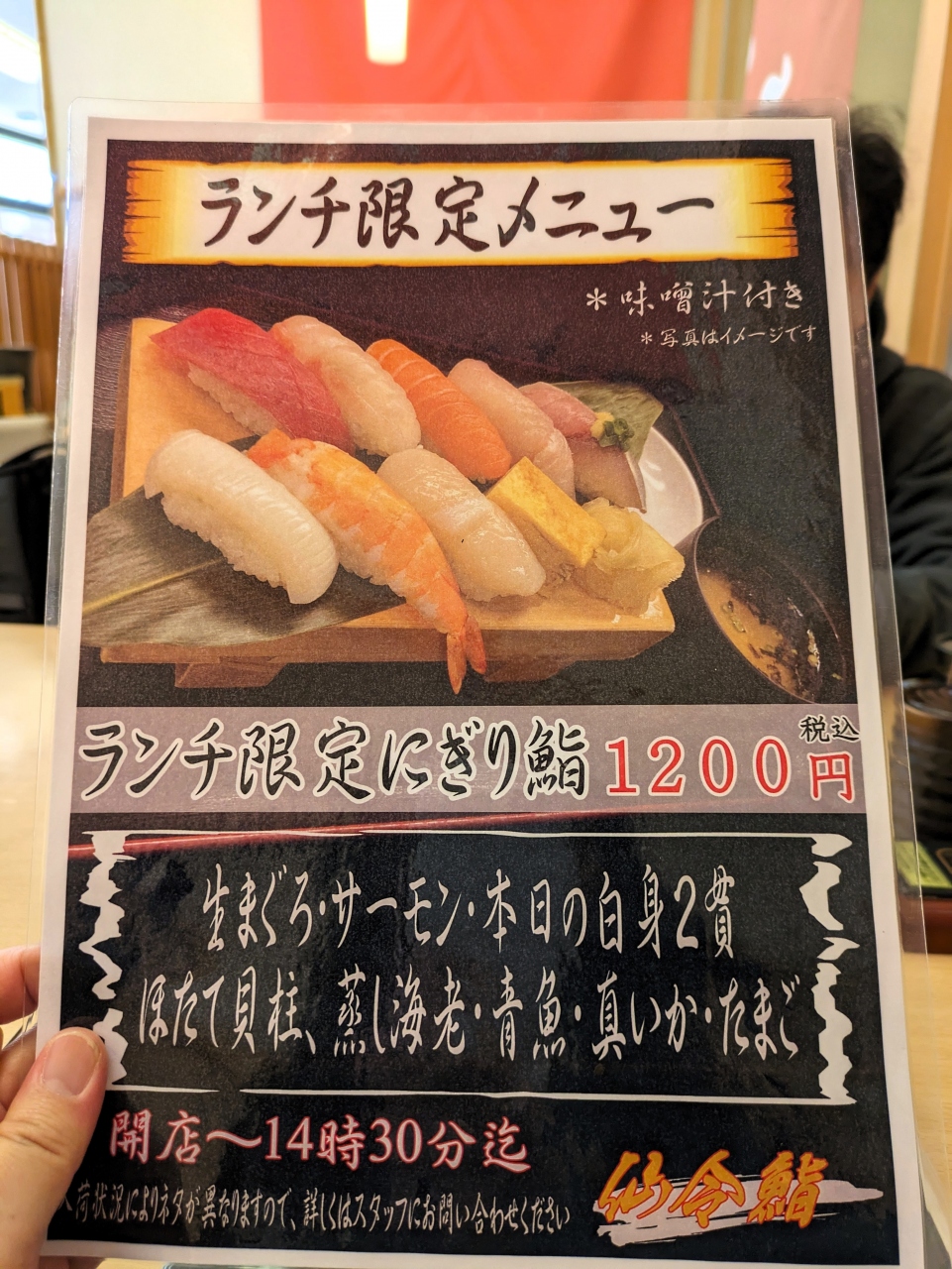 ランチ価格の1,200円のにぎりもありましたが、親方おまかせ握りを注文する声が多かったです。三井アウトレットパークのフードコートは座席を確保するところから大変ですが、こちらは寿司屋なので座席確保の心配もありません。