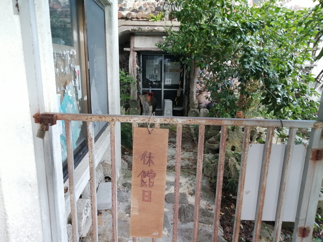 行ってみたら閉まってました。“休館日”の表示がされていましたが、なんとなく営業している実態が感じられない…。どこなく廃墟感が漂っていました。しかし展示館と思われる建物は一見の価値ありです。これも沖縄の古民家なんでしょうか。独特の雰囲気、無国籍があり、なかなか味わい深い建物でした。