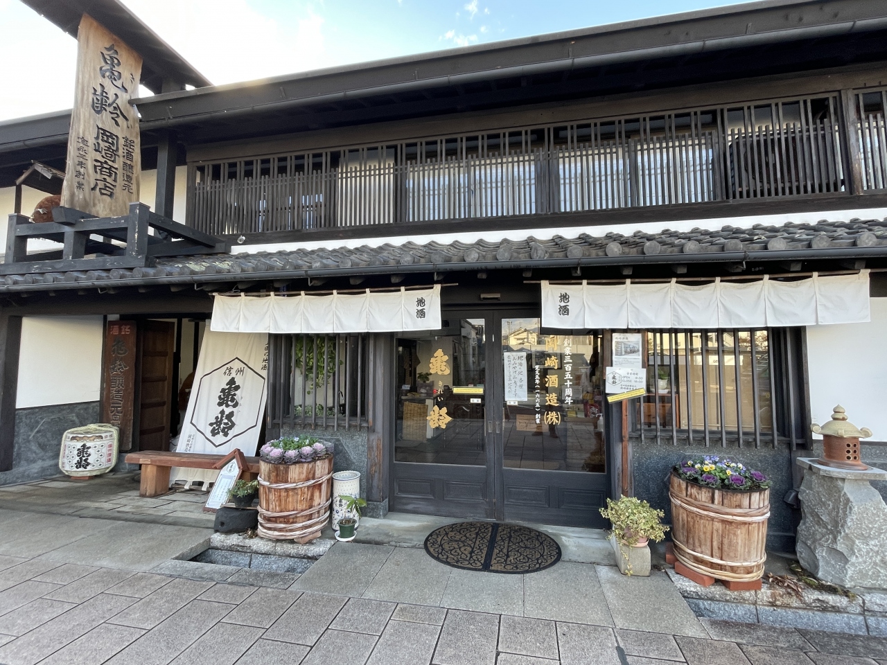 北国街道柳町で1665年から続く造酒屋さんです。銘酒「亀齢」の醸造元で私もひやおろしを購入しました。店の外観は宿場町の風景にハマっています。江戸時代にタイムスリップした感じになります。また、店の隣の土間は見学自由で入れましたが、お店に伝わる雛人形が飾られていました。北国街道柳町のシンボル的な酒屋さんです。