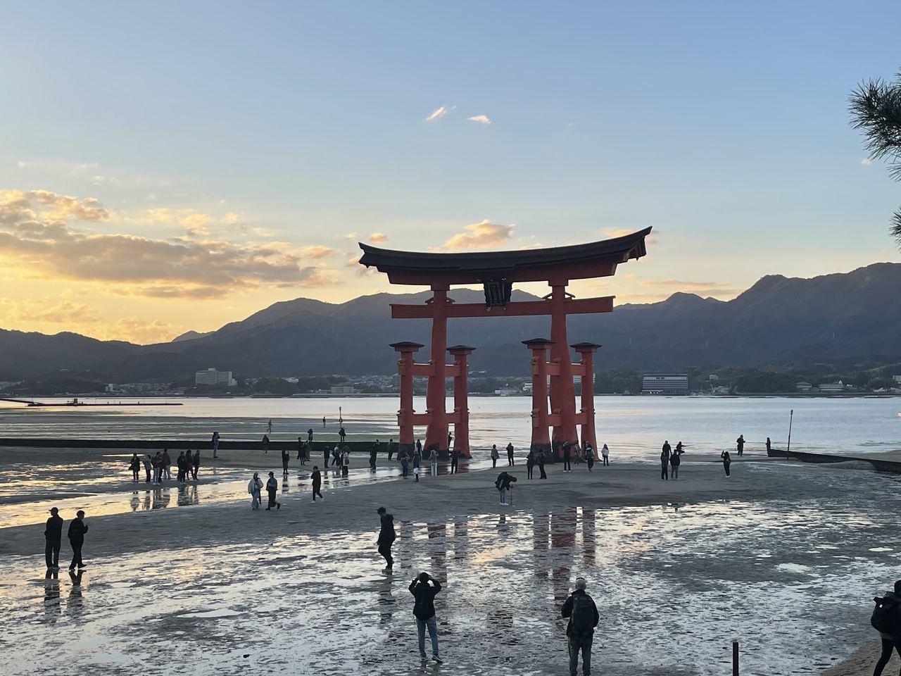 11月中旬の午後、修学旅行生やインバウンドの観光客で入場口には絶えず列ができていました。訪れた日は干潮で海にも降りることができ、大鳥居の近くまで近づくことができました。昨年2022年、70年ぶりの大修理が完成しています。