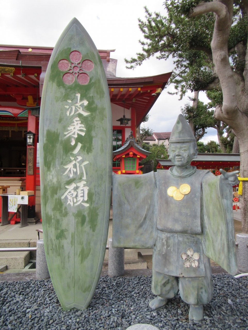 境内には波乗り参道があってサーフボードを持った菅公さんいて、時勢の波に乗り夢がかなう事を祈願する事ができます。