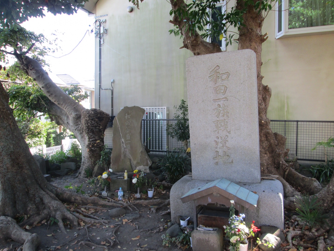 古墳時代の墳墓跡に和田義盛一族の墓が建っています。永らく北条氏に組していましたが、北条義時の挑発に乗り、義盛は義時との戦い(和田合戦)でこの地で敗れ、ここは和田一族の屍を埋葬した塚と言われています。頼朝一途で、真正直の義盛ですが、息子や甥が謀反ありと疑いを懸けられ、北条氏と戦わざる得ない義盛はかわいそうですね。喧騒な鎌倉の中、訪れる人は多くなく、ひっそりと塚はあります