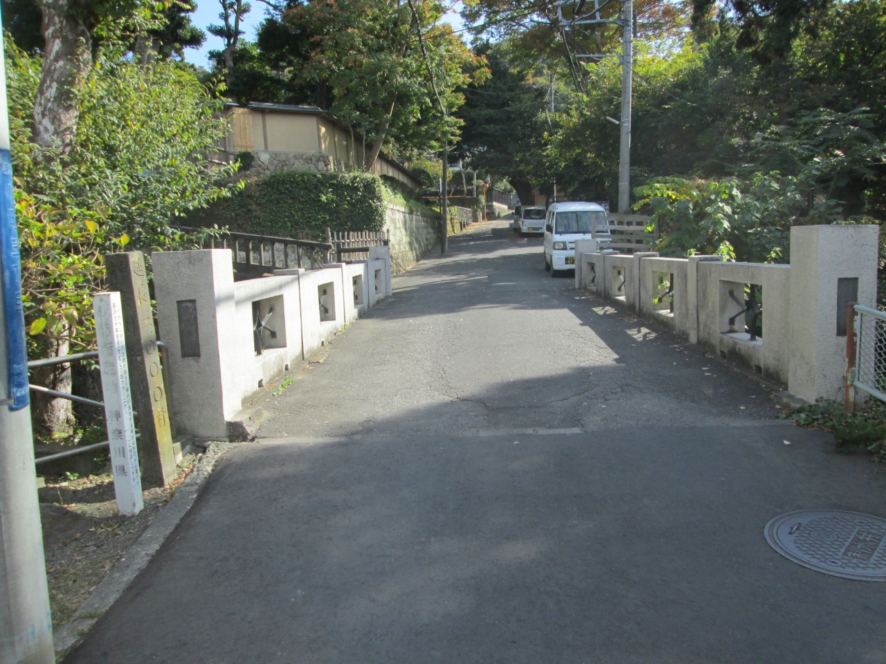 東勝寺跡腹切りやぐらに行く途中にある滑川に架かる橋です。1924年建設の鉄筋コンクリート造りのアーチ形構造で、鎌倉十橋の一橋、鎌倉景観百選にも選ばれています。上を通過するだけでは、特筆することはありませんが、横から覗くと、アーチ型の橋げた、滑川の水、自然との渓谷美は趣があります