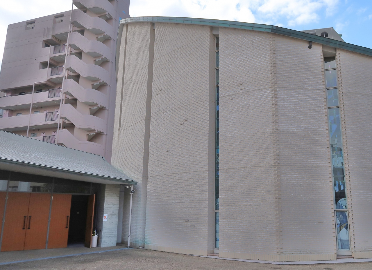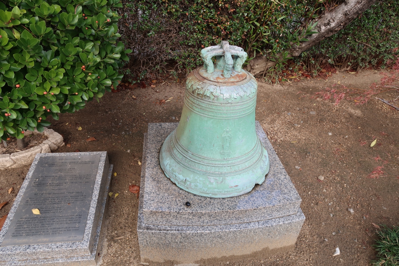 阪神淡路大震災で被災した3つの教会が統合され新しくできた教会で、パールストリートとハンター坂の交差点にありました。珍しく教会の扉が開かれていたので、聖堂内部も見学しました。旧カトリック中山手教会にあった、フランスのシャルトルでつくられたというステンドグラスや、旧カトリック下山手教会にあった鐘も、保存されていました。