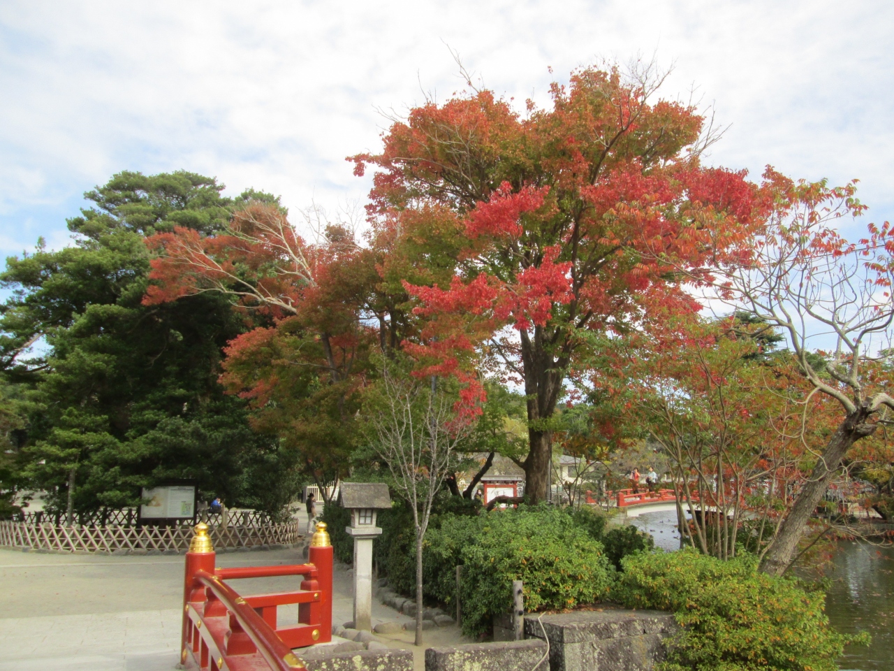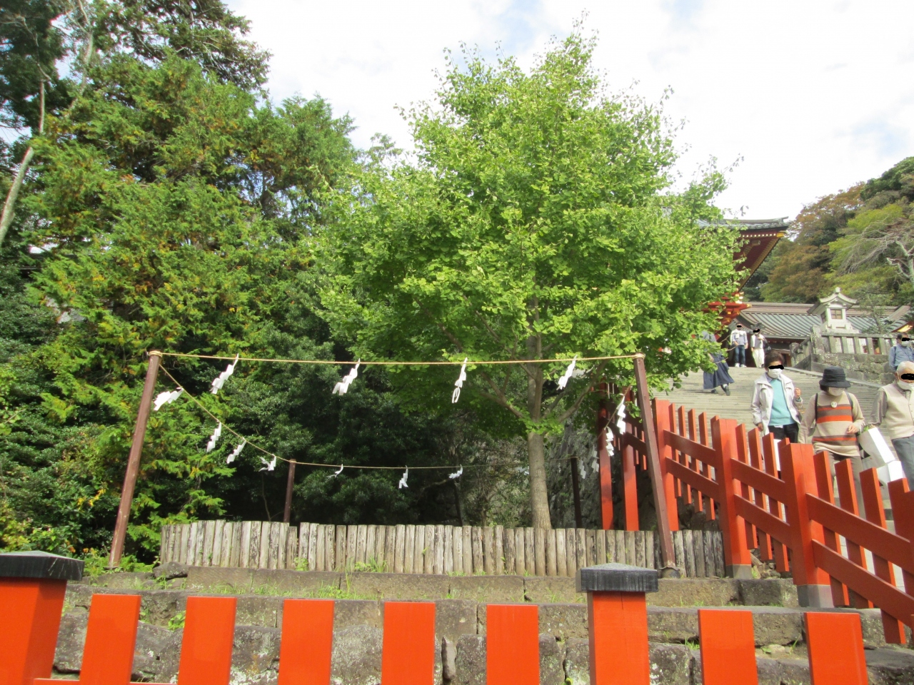 八幡宮は1063年創建、御祭神は応神天皇、比売神、神宮皇后です。 武家源氏の守護神です。中学時代の遠足で行ったのが初めてで、その後10回ほど訪れています。途中寄り道はしましたが、一の鳥居から本宮まで歩きました。源氏池の周囲に綺麗な紅葉が見られました。その他ではまだ紅葉には早かったようです。かって、本宮に登る石段の左手に樹齢千年以上と言われるイチョウの木がありましたが、2010年の台風により倒れました。(鎌倉時代、頼家の子公暁がこの木の隠れ、鎌倉第三代将軍源実朝を暗殺したという逸話のある銀杏です。10年ほど前に行ったときは、位置はそのままで、上部は切り取られ、そのまま残っていました。4年ほど前に訪れた時は、根を残し、旧株は隣に移設されていて、跡地には旧株の根を残して埋められていました。今回訪れてみると、旧株は幹の周囲から多くの脇枝が出ています。初代目の有った所からは旧株の根から新しく芽が出て、幹は未だ細いですが、樹高3M位まで育っています。逞しいですね。ウイークデーにもかかわらず人出が多いです