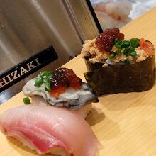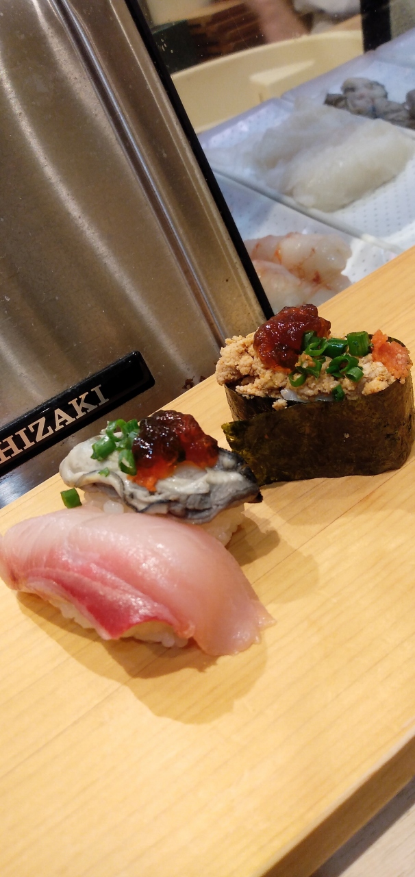 飯田橋駅を降りて神楽坂をちょっと登った、カウンター席のみの小さなお店。各席にタッチパネル実装済みで注文は楽チン。職人さんが握ってくれます。二貫提供ですが、セットで一貫ずつ色々食せてウレシイ。オススメメのお品は活きが良いです。