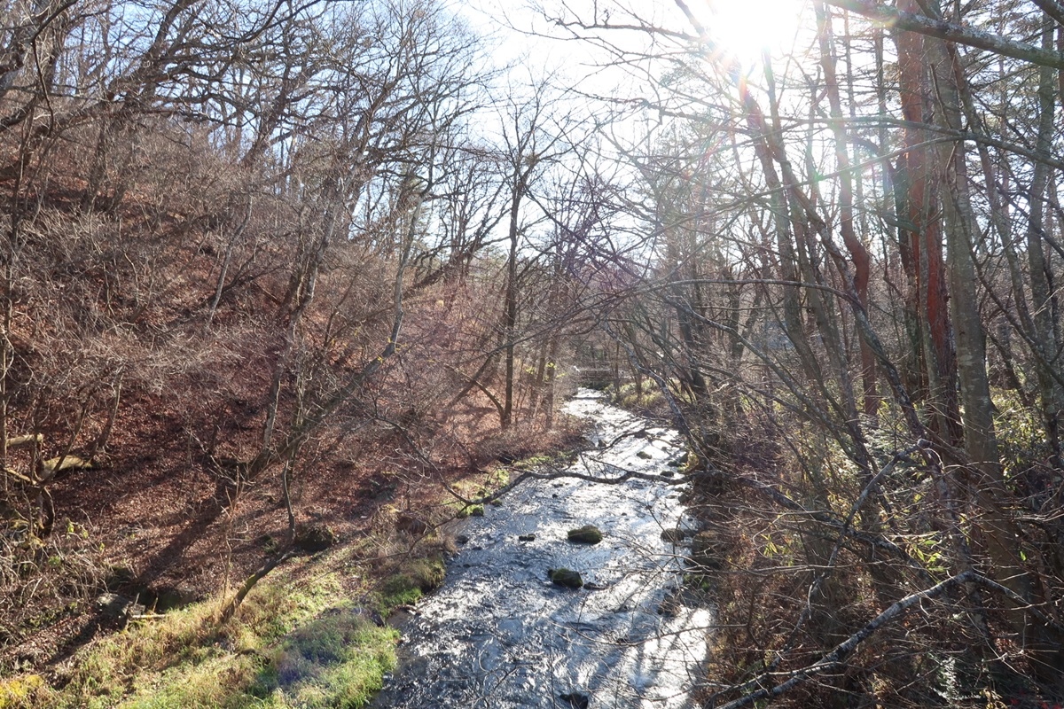 ホテルからは徒歩で約20分ほど。良く晴れた日だったので気持ちよく、森の自然を感じながらハルニレテラスへと向かいました。