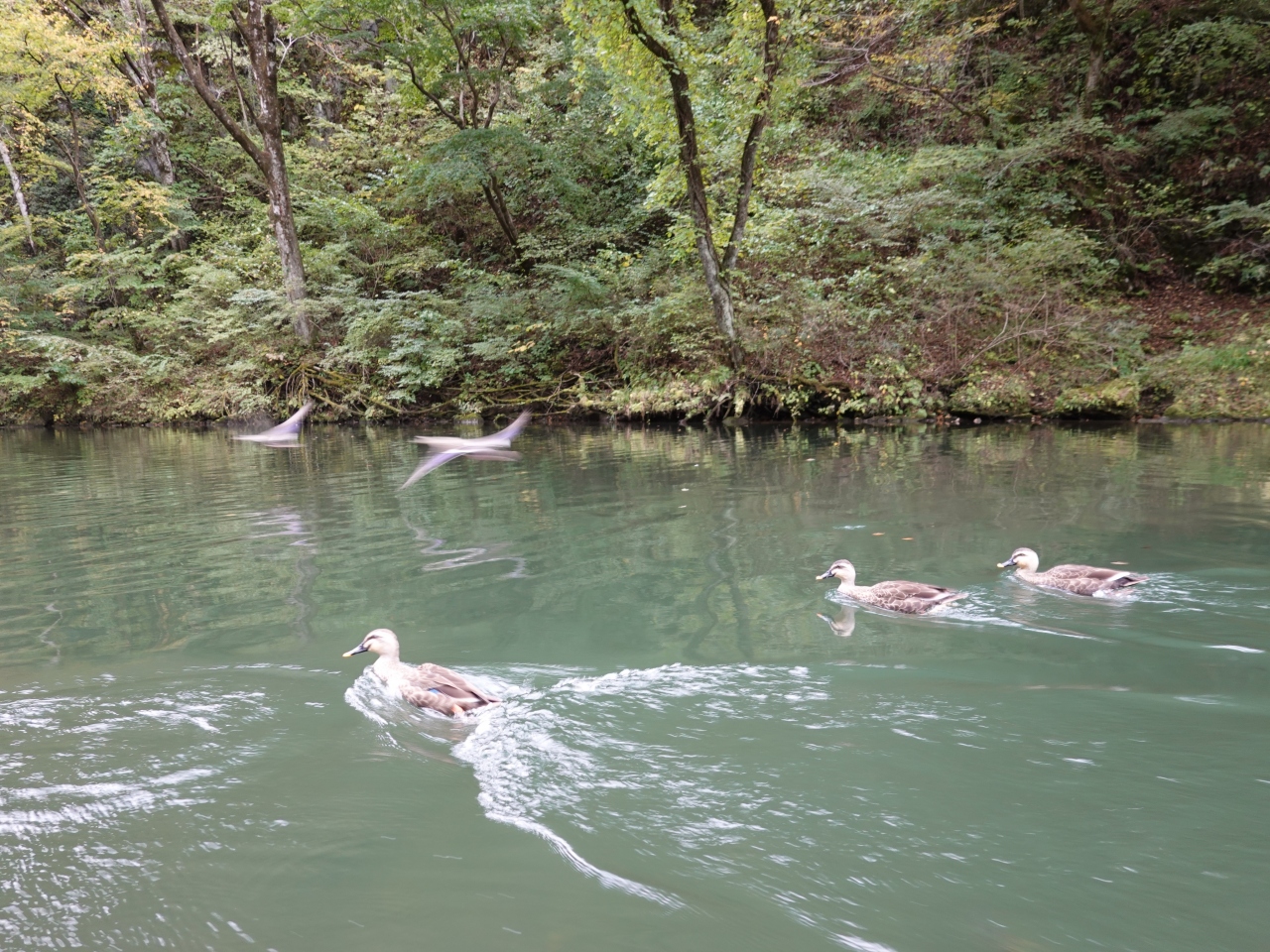 「砂鉄川」は、岩手県を流れる北上川水系の一級河川で、猊鼻渓の舟下りで有名です。舟下りでは濃い緑の川面を泳ぐ鴨の姿なども目にすることが出来ました。猊鼻渓のあたりの流れはゆったりで、のどかな雰囲気に癒されました。