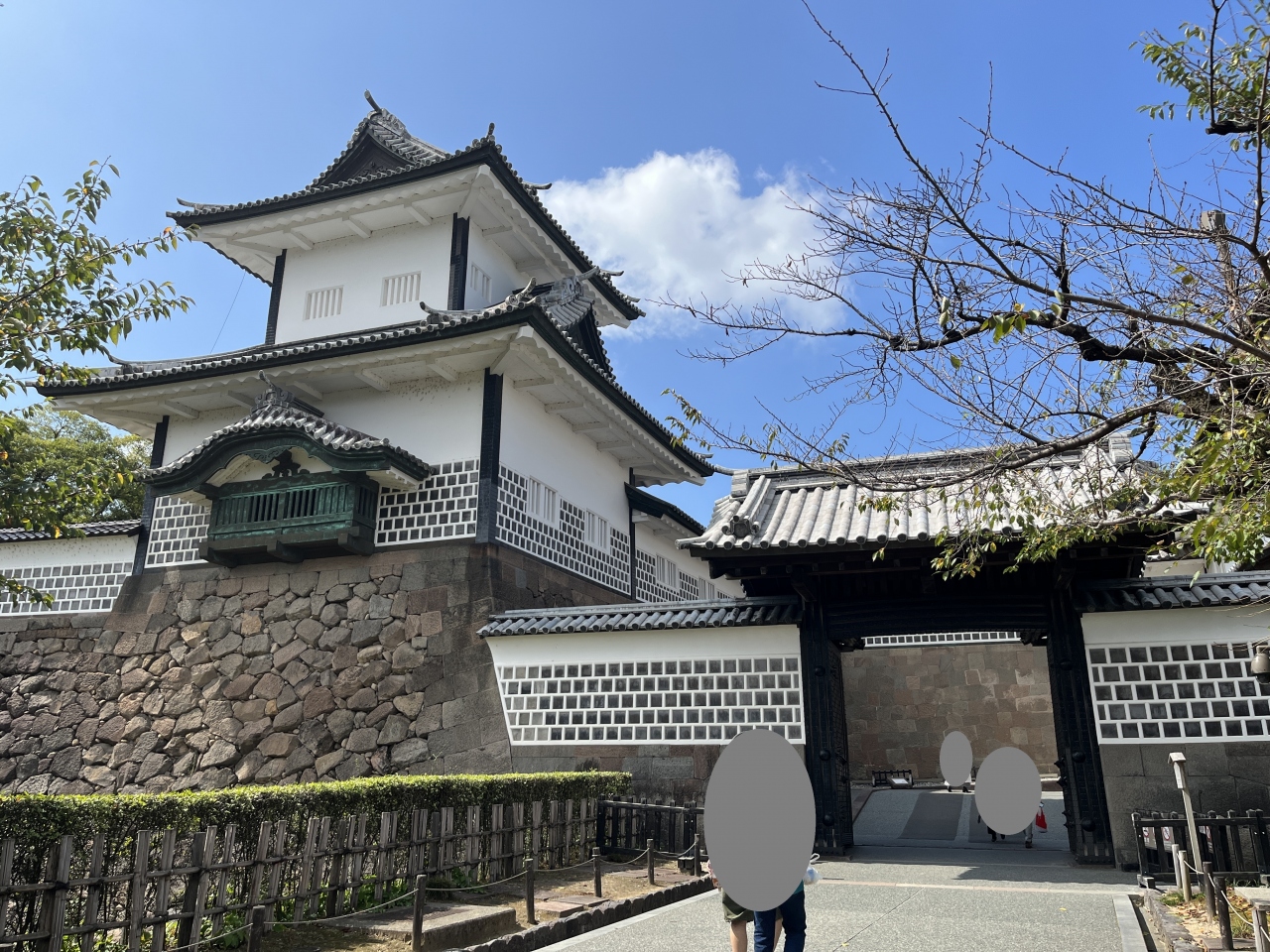 金沢城公園を訪問した際、こちらの門を通りました。兼六園に近いところにある門なので、兼六園と金沢城跡をあわせて訪問する場合に通ることが多い立地だと思います。とても日差しがきつく暑い日の訪問となりましたが、人通りはなかなか絶えることはなく、にぎわっていました。