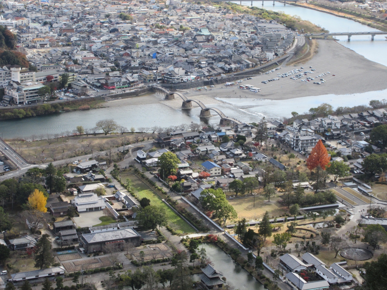 それで、錦帯橋や、ふもとからも天守が良く見えます。