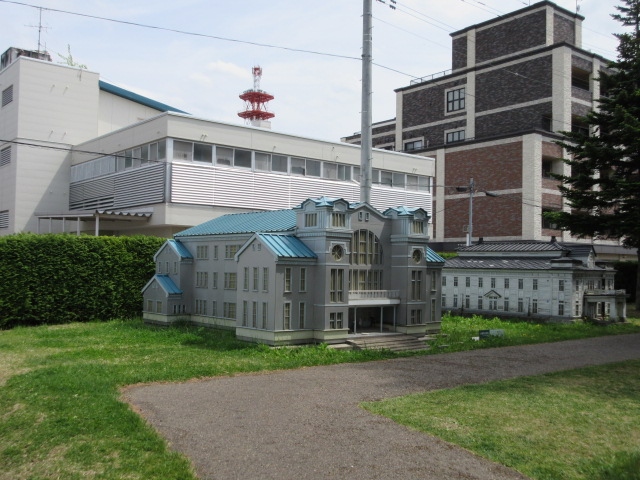 お城の近く、追手門広場にあります。洋館が立ち並ぶゾーンのちょっと裏手あたりに散策できるスペースがあって、ここに10分の1で再現された建物群が並んでいます。明治から大正に建てられた弘前市内の建物のミニチュアだそうで、かわいらしく建物の全体が見られます。