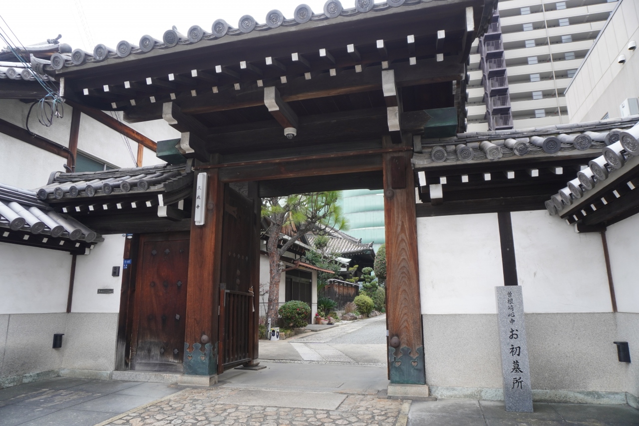 お初墓所と書いた石柱があって、ここは曽根崎心中で有名なお初の墓があるのですね。木戸を開けて奥に進むと「妙力信女」と記した小さな墓がありました。ただ、墓石はまだ新しい感じです。