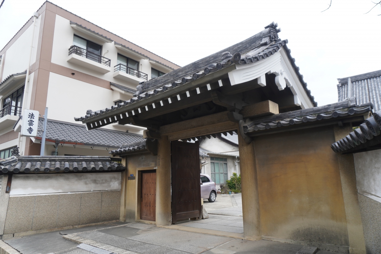 大坂の陣後、道頓堀川の開削でも活躍した松平忠明による大坂市中の寺院整理のために造られた寺町の一つ、生玉筋中寺町。その24か寺の一つが法雲寺。臨済宗のお寺です。