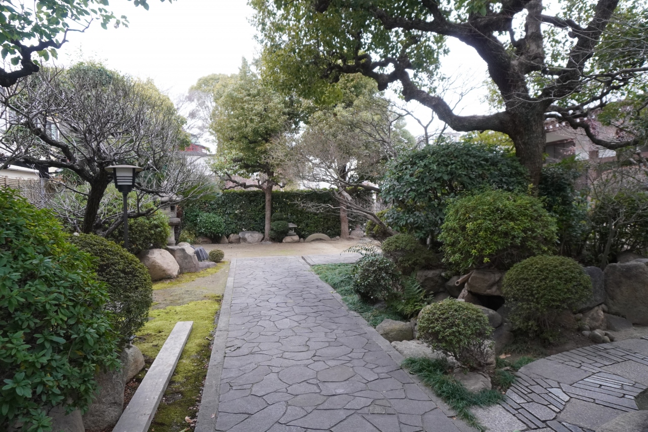 大坂の陣後、道頓堀川の開削でも活躍した松平忠明による大坂市中の寺院整理のために造られた寺町の一つ、生玉筋中寺町。その24か寺の一つが顕孝庵。寛文元年(1661年)、鴻池家が一族の墓の菩提寺として顕孝庵と改め復興したという曹洞宗の寺です。