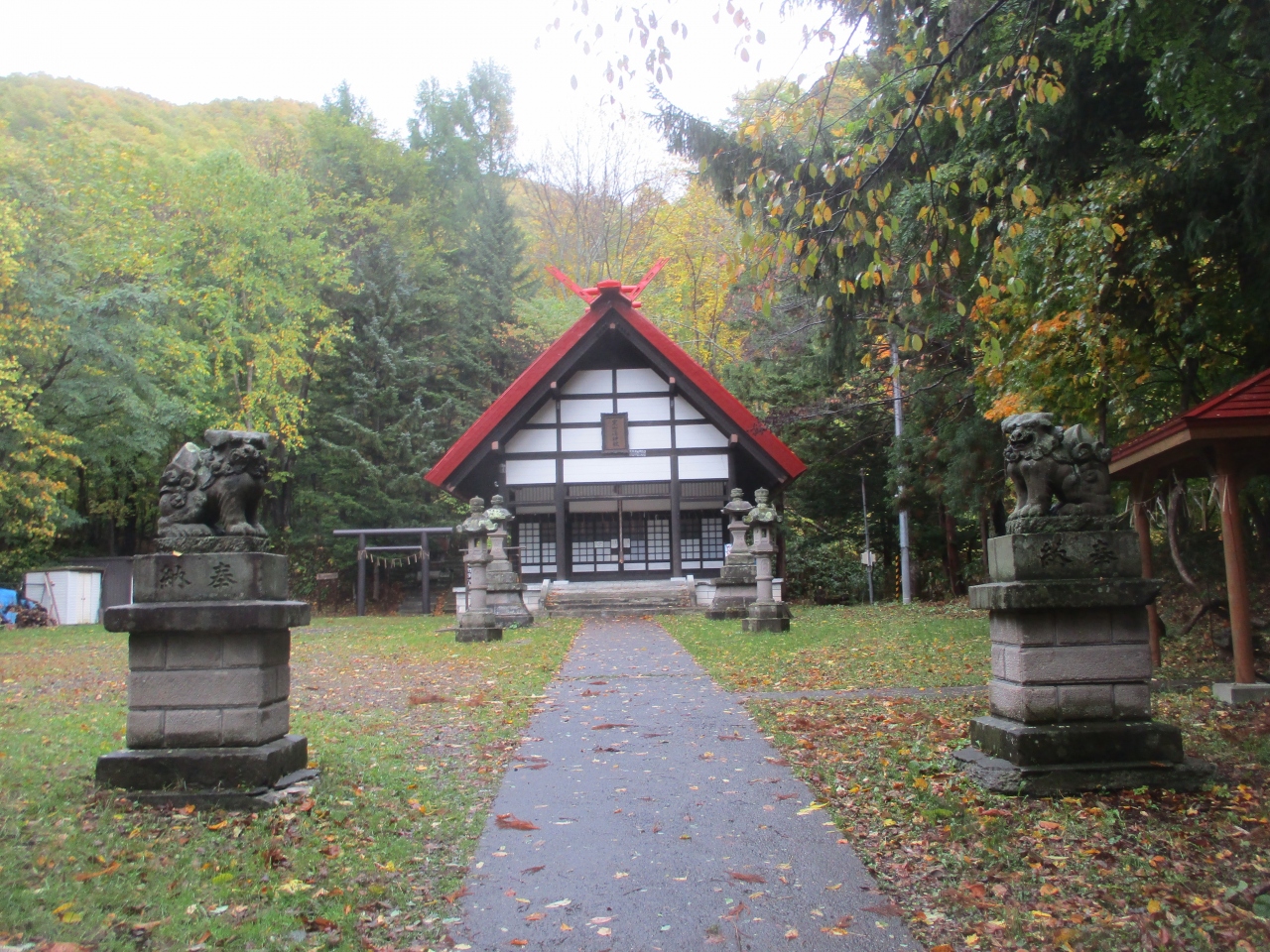 国道230号線をじょうてつの路線バスが白糸の滝を過ぎると定山渓温泉です。温泉街に入り、まもなく定山渓神社前の停留所でしたが、その手前に定山渓神社かありました。大きな鳥居と神社の標石がありました。林に囲まれた境内は奥行きが深かったです。