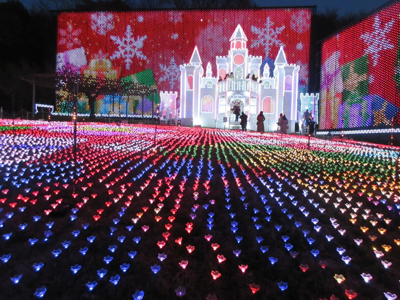 イルミネーションは藤棚やピラミッド、お城、プロジェクションマッピング等いろいろありました。