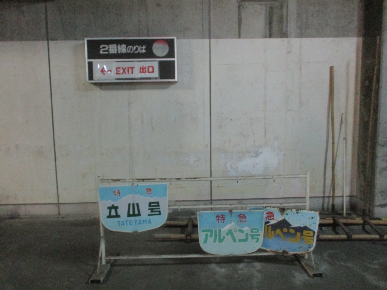 富山地方鉄道は本当にローカル線で、駅舎はもとより、車両も大手私鉄のお下がりをリメイクしたものが多かったです。ローカルな地域住民の足であるとともに、トロッコで有名な宇奈月や、雪の壁で有名なアルペンルートの玄関口立山へのアクセス路線です。立山駅に到着すると、駅ホームに昔使われていたヘッドマークが展示されていました。