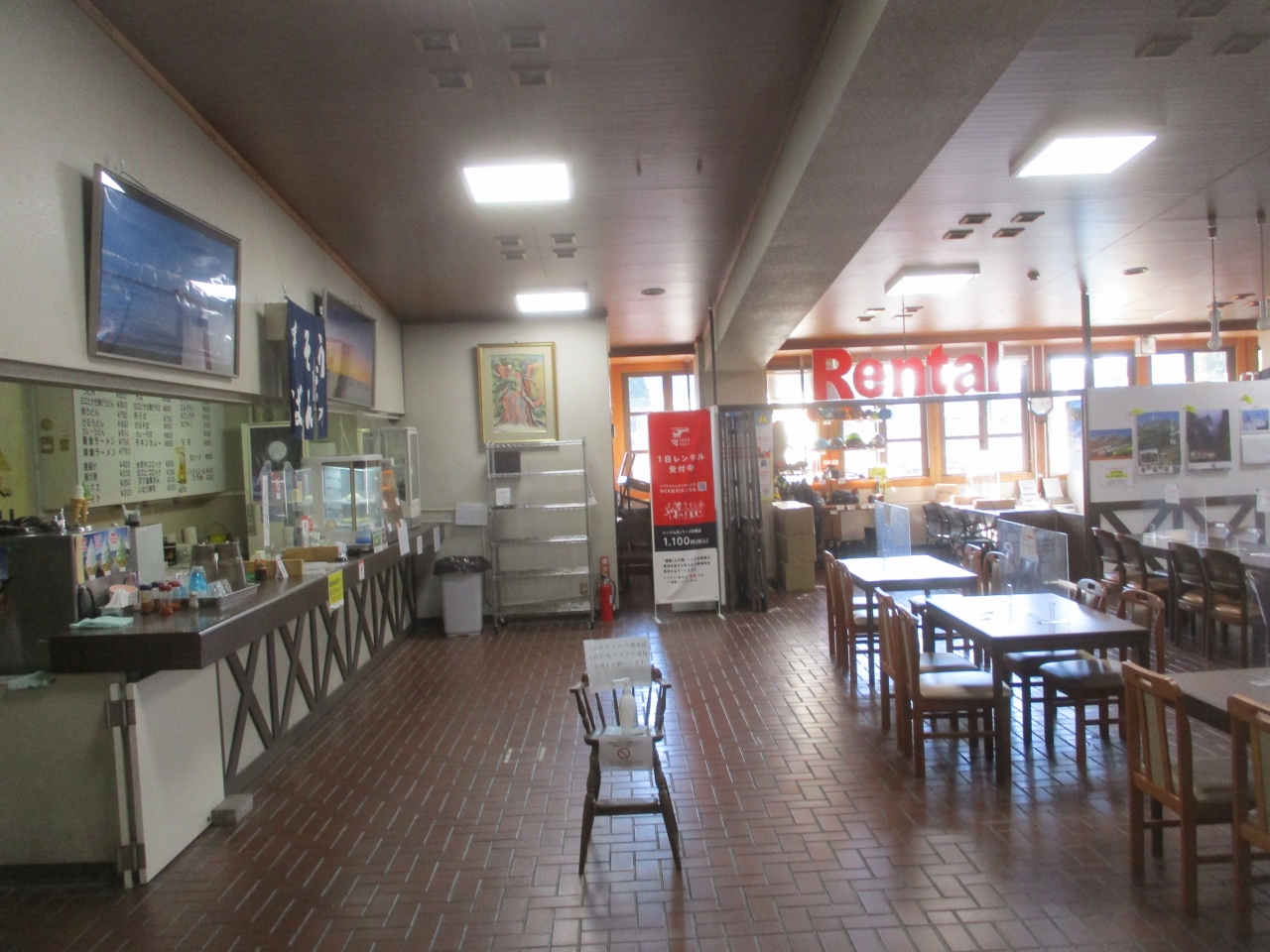 富山地方鉄道に乗るまで30分くらい時間があったので、こちらで食事しました。食券を購入して、セルフサービスの水を汲んで席で待ちました。100名くらい座れるくらい広いお店でした。きっと、登山客が多いときでも対応可能になっているようでした。おそばがおいしかったです。