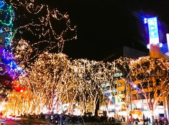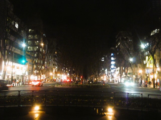 勾当台公園から西公園までケヤキ並木の大通りの[定禅寺通り]で、年末には「SENDAI光のページェント」の舞台です。17:30頃には日も落ちて暗くなるのですが、一番町のネオン街と広告塔の`仙台銘菓の萩の月`が明かりを,,…19時になった瞬間に、ケヤキ並木のLEDが灯りました/ケヤキ129本に約50万球のLEDを♪ 地元人/観光客(小生も)もこの一瞬を待ち望んでいますし`萩の月`も大歓迎ですね☆
