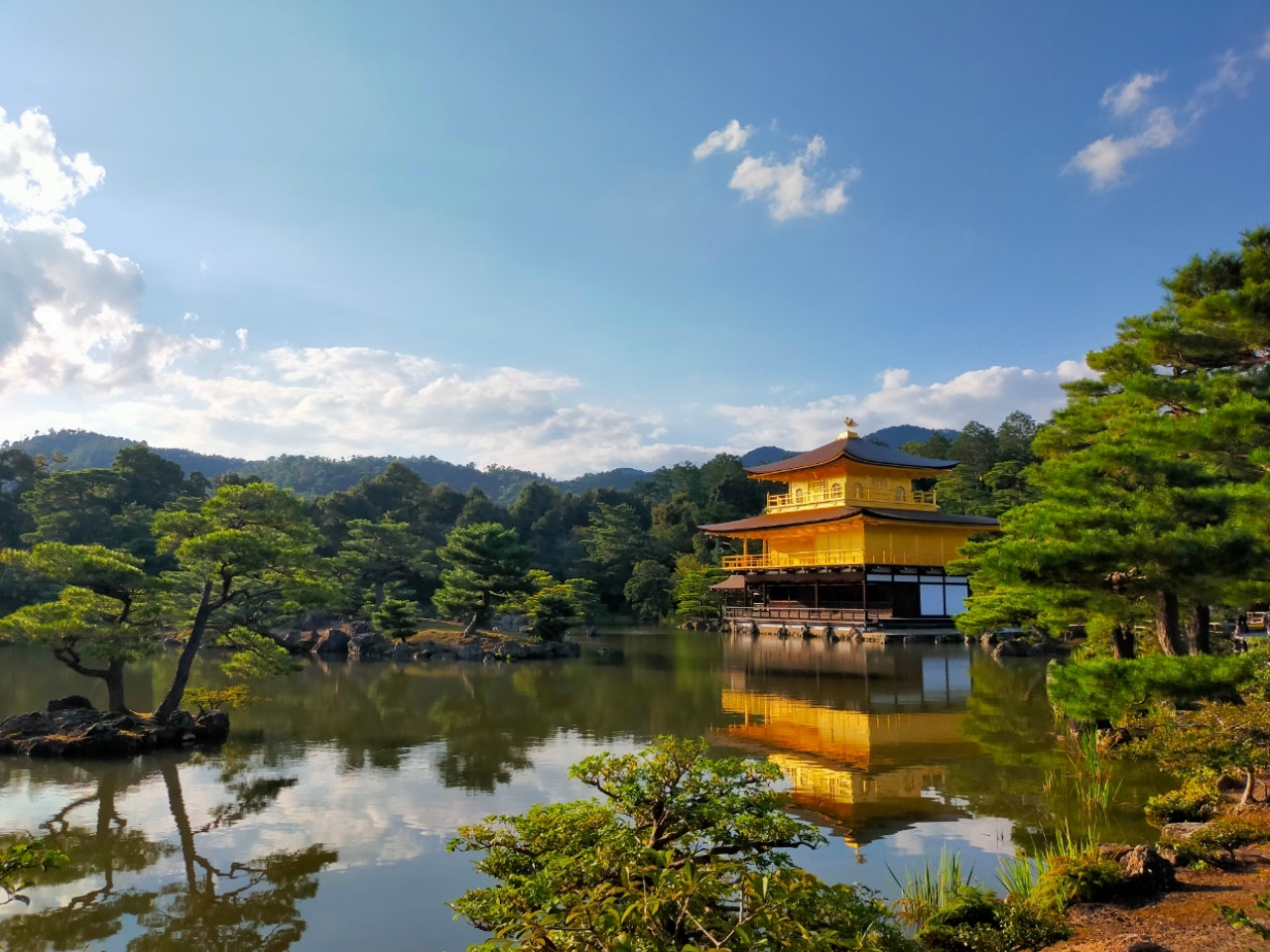 京都を代表する観光地、金閣寺。初めて訪れたのですが、想像以上に金ピカできれいでした。池に映る様子や周りの緑や青い空とのコントラストもきれいで、とても絵になる風景だと思いました。まだ入国規制がなくなる前だったので、観光客がものすごく多いこともなく、ゆったり観光できました。