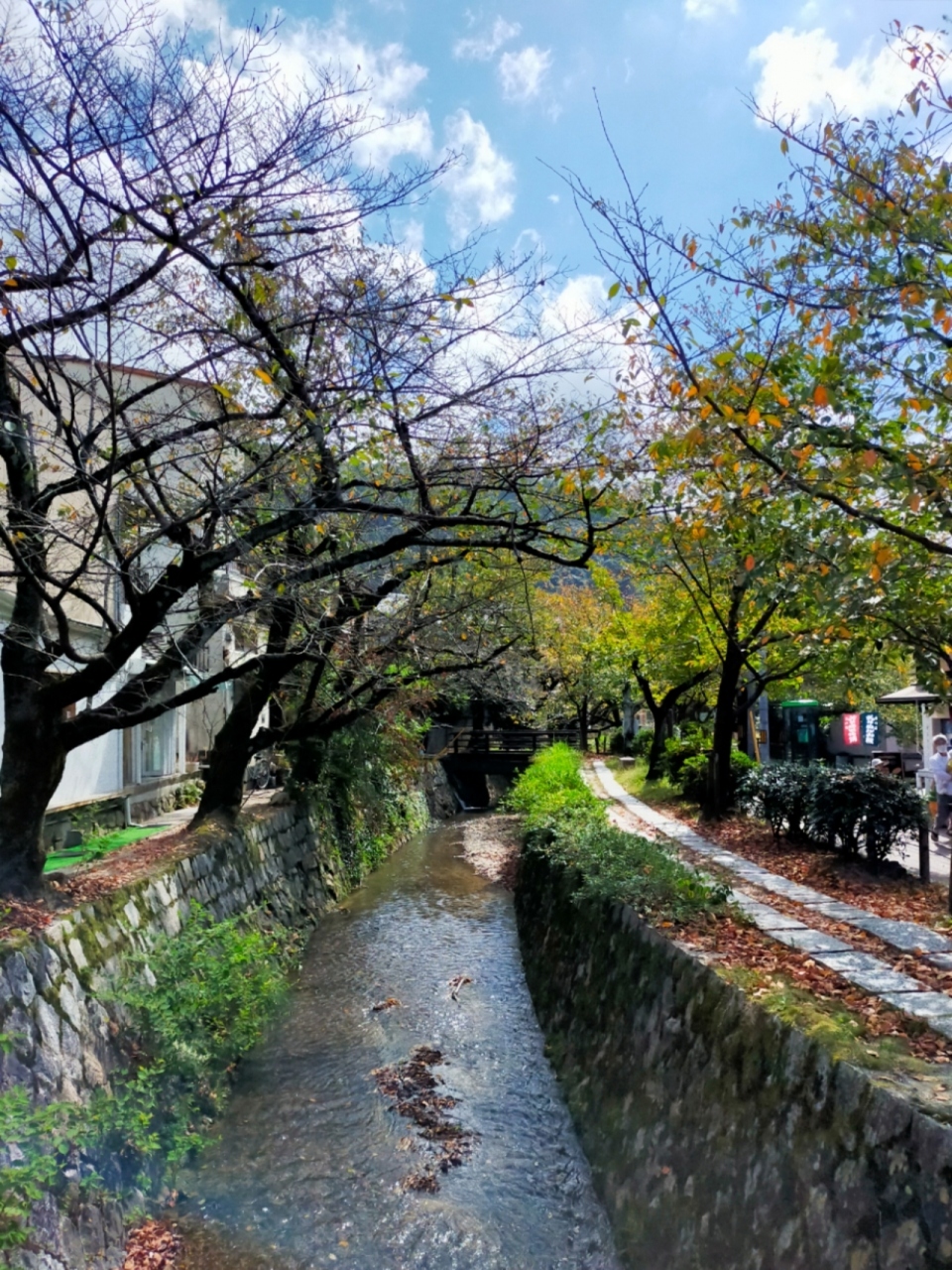 バスを降りて銀閣寺まで歩いていく途中で通りました。真ん中を小さな川が流れており、その両側に並木が続いている美しい小道です。訪れたときは観光客はほとんどおらず、とても静かで落ち着いた雰囲気でした。桜が有名のようなので、ぜひ桜の時期にも歩いてみたいです。