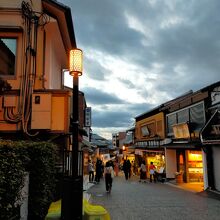清水寺へと続く参道です。道の両側にはお土産屋さんやその他お店、飲食店が並んでいます。色々と見ながら散策するのが楽しかったです。観光客も多く、とても活気がありました。夕方になると街灯やお店の灯りで、より風情を感じられる景色でした。