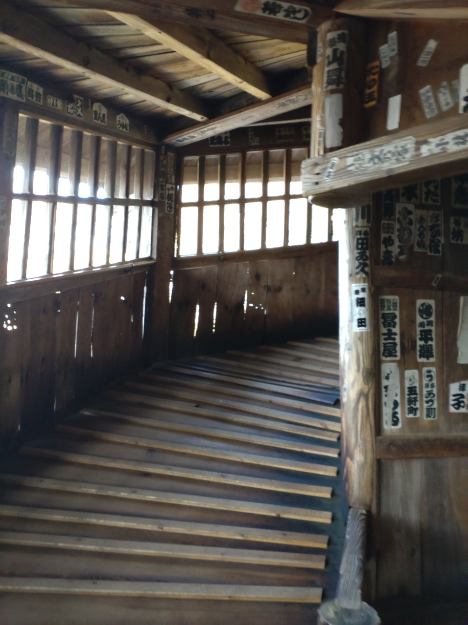 飯盛山にある、たったこれだけのスペースなのに、上る人と下りる人が行き合わないという、珍しい造りの建物。