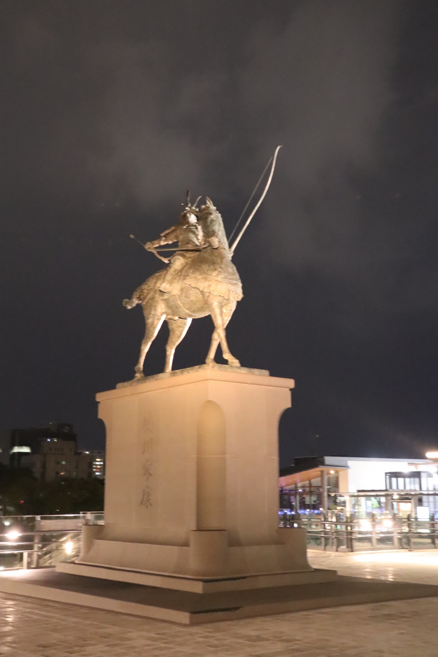 OTOリバーサイドテラスから東岡崎駅に向かう途中ウォークデッキ上に大きな徳川家康公の騎馬像が設置されています。