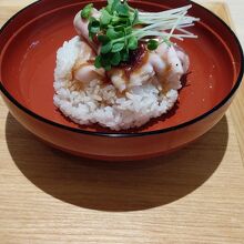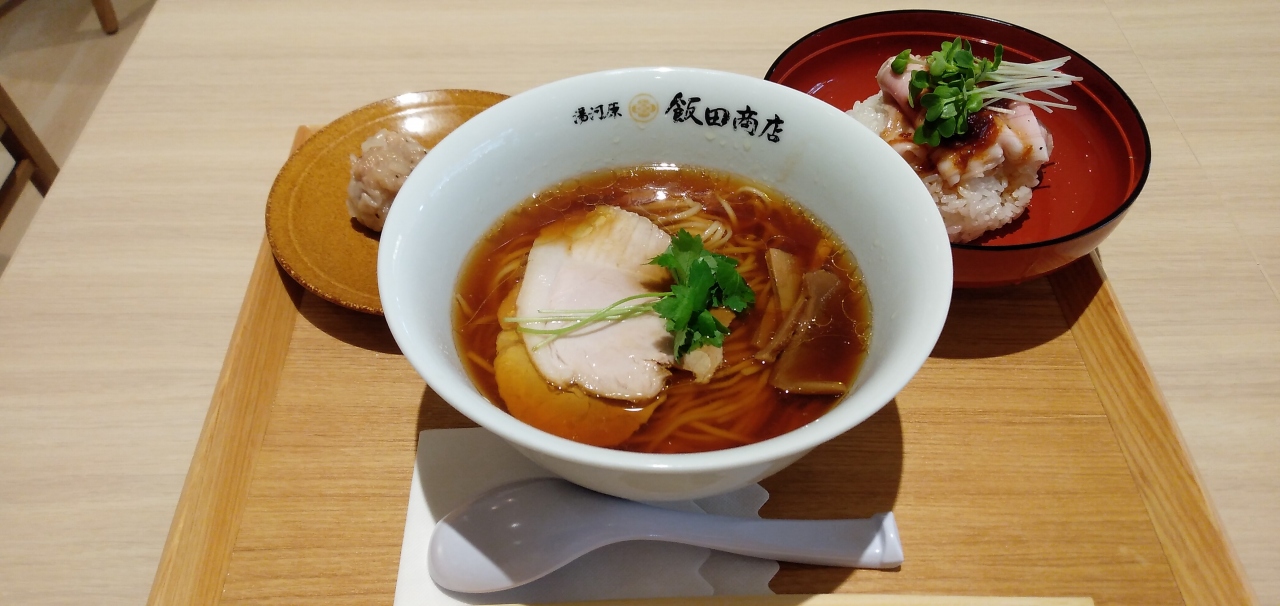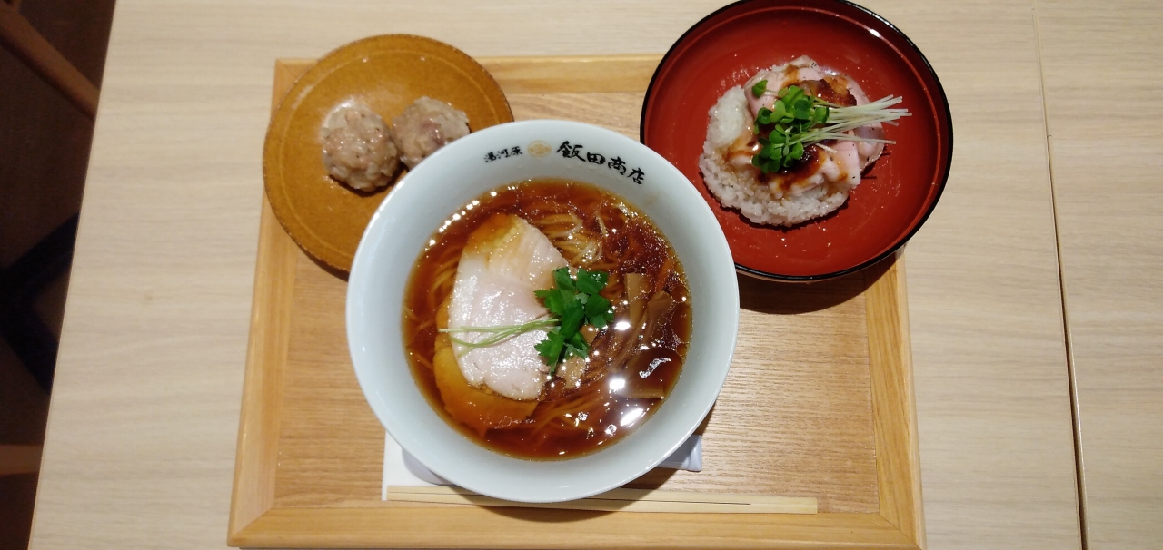 湯河原のラーメン屋さんのフードコート店。行列の出来るお店ですが、10時開店と同時でしたので即案内。あっさり醤油スープは少し酸味立つ懐深い味わいでした。おにくごはんは、薄切りロースの脂ぢわ甘さが楽しめるお品。天盛りカイワレが程好い刺激。プレミアムしゅうまいは肉感ごりごりな、しゅうまいニューウエーブ。新たな食体験満載なお店です。