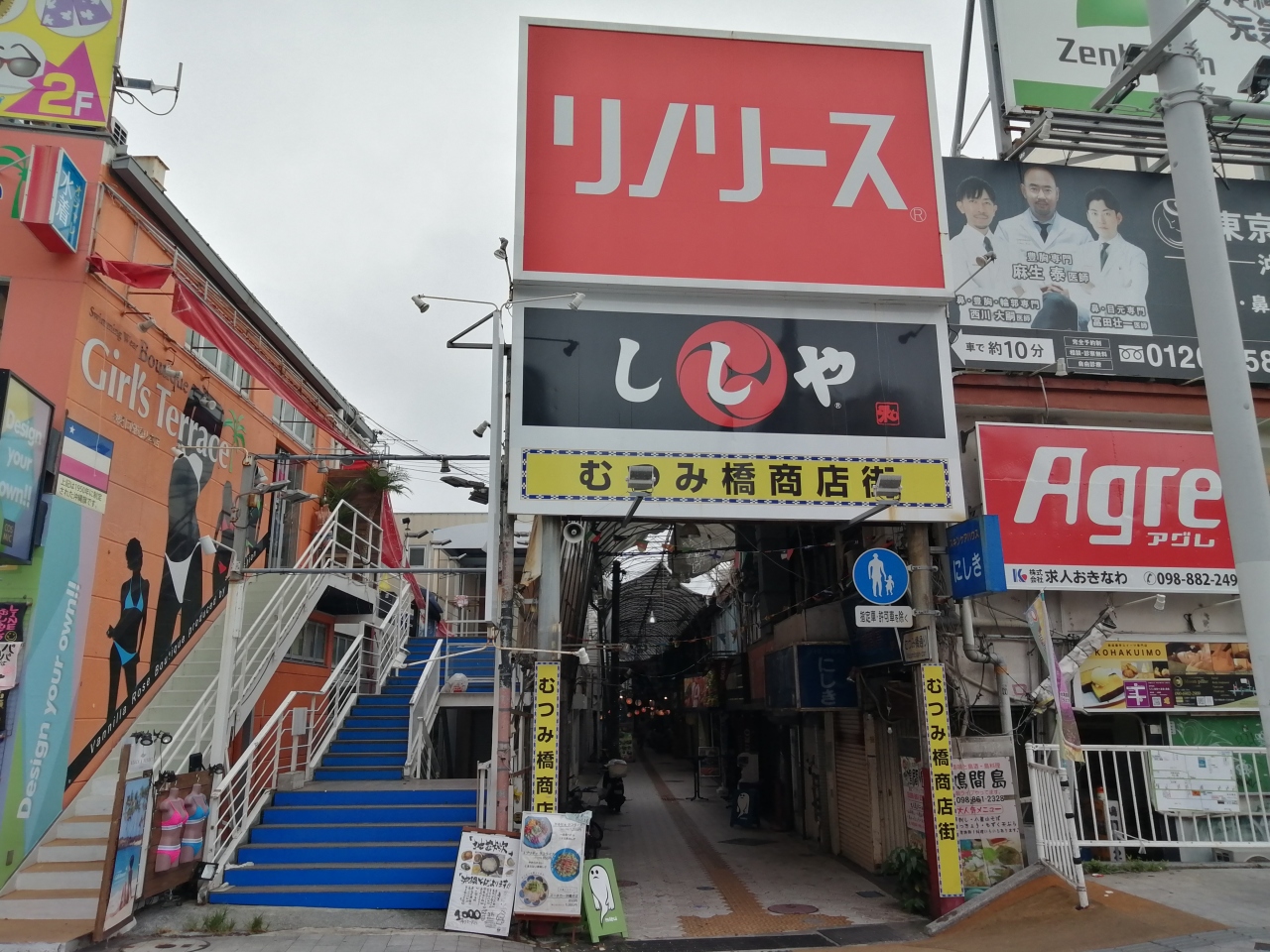 国際通り、むつみ橋交差点から南に伸びる商店街です。そのすぐ西側を並行する観光客で賑わう「市場本通り」とはとても対照的。つまりはローカルということ。シャッターに落書きされた空き店舗、シブい飲み屋、怪しい名前の雑貨屋などディープな世界が広がっています。歩くなら断然こちらの通りのほうが楽しいです。