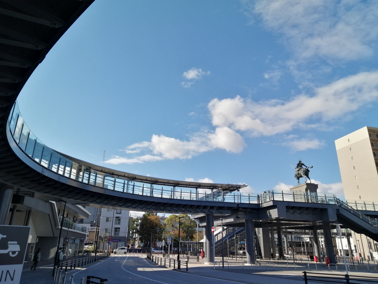 乙川沿いにある商業施設「OTO RIVERSIDE TERRACE」前のペデストリアンデッキ上にあります。若かりし頃の徳川家康公の騎馬像です。この日はマンホールサミットの会場の一部となっており、像の前には岡崎市内に設置されているマンホールの蓋が展示されていました。スタッフもおり、写真撮影のアングルなどをアドバイスしていただけました。普段見ることはできない姿だったので得した気分になりました。