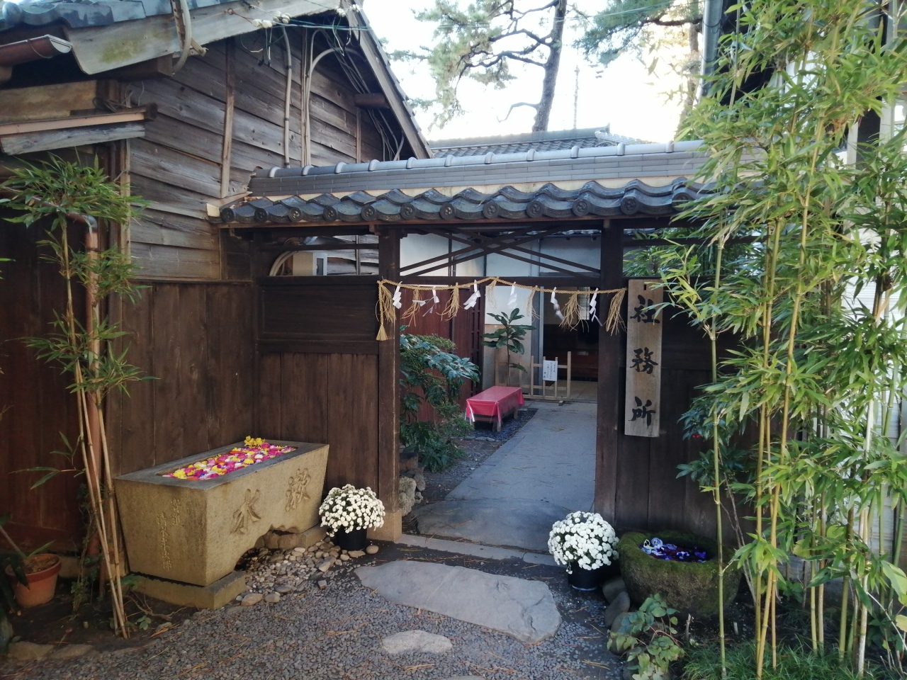 岡崎公園東側、乙川の堤防道路に面しています。一見変哲のない小さな神社ですが、西暦110年創建の岡崎最古の神社です。岡崎と言えば徳川家康生誕の地、その家康が25歳の時、厄除開運祈願をしたという由緒ある場所でもあります。それだけでも十分訪れる価値はありますが、さらに見逃せないのが美しい花手水。社務所入口の門の前と手水舎にあります。訪れた際はぜひご覧になって下さい。