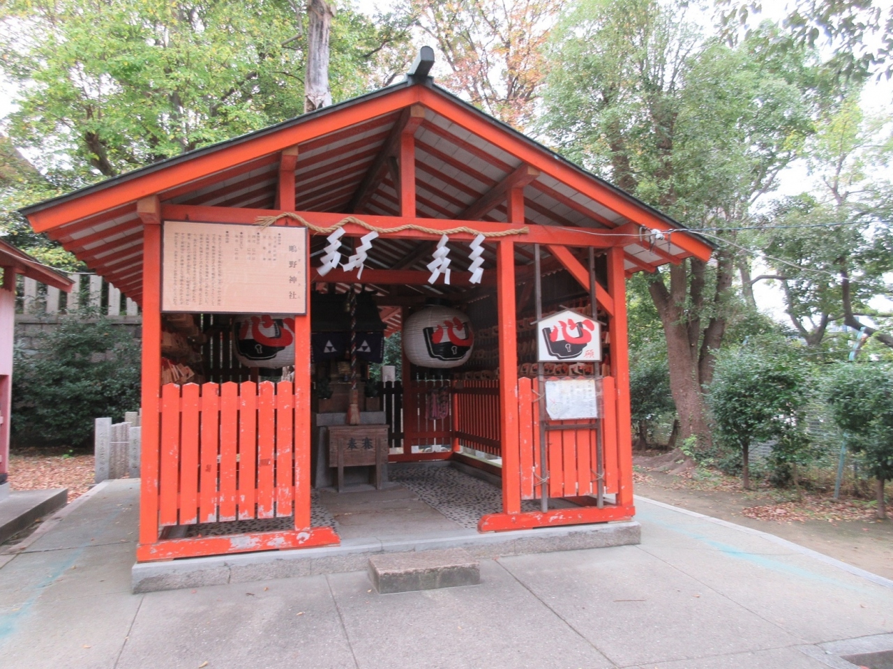 【生國魂神社】の広い境内にある摂社・末社のひとつで、つい見落としてしまいそうな位に規模も小さいお社です。江戸時代には大阪城の近くにあったようで、秀頼公の母である淀君との関係が深いとのこと。「心」と書かれた提灯が社殿(といっても祠を覆う簡単なつくりですが)にかけてあったのが印象的でした。それ以外には特筆すべき点は見つかりませんでした。